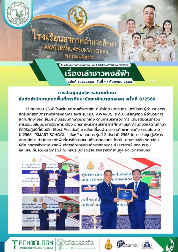 การประชุมผู้บริหารสถานศึกษา สังกัดสำนักงานเขตพื้นที่การศึกษามัธยมศึกษาสกลนคร ครั้งที่ 8/2568 by adminPosted on 19 กันยายน 2025