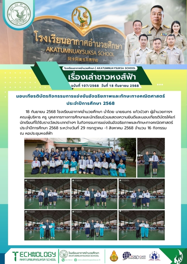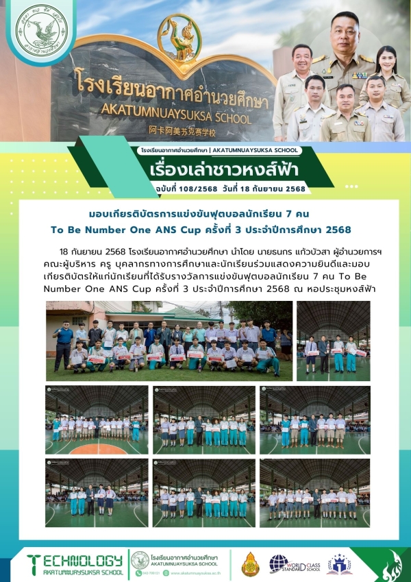 มอบเกียรติบัตรให้แก่นักเรียนที่ได้รับรางวัลการแข่งขันฟุตบอลนักเรียน 7 คน To Be Number One ANS Cup ครั้งที่ 3 ประจำปีการศึกษา 2568 by adminPosted on 19 กันยายน 2025