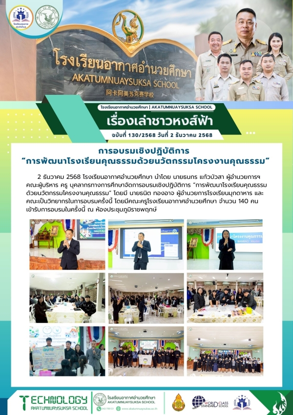 จัดการอบรมเชิงปฏิบัติการ “การพัฒนาโรงเรียนคุณธรรมด้วยนวัตกรรมโครงงานคุณธรรม” by adminPosted on 3 ธันวาคม 2025