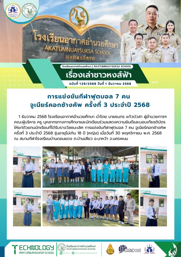 การแข่งขันกีฬาฟุตบอล 7 คน จูเนียร์คอกช้างคัพ ครั้งที่ 3 ประจำปี 2568 by adminPosted on 1 ธันวาคม 2025