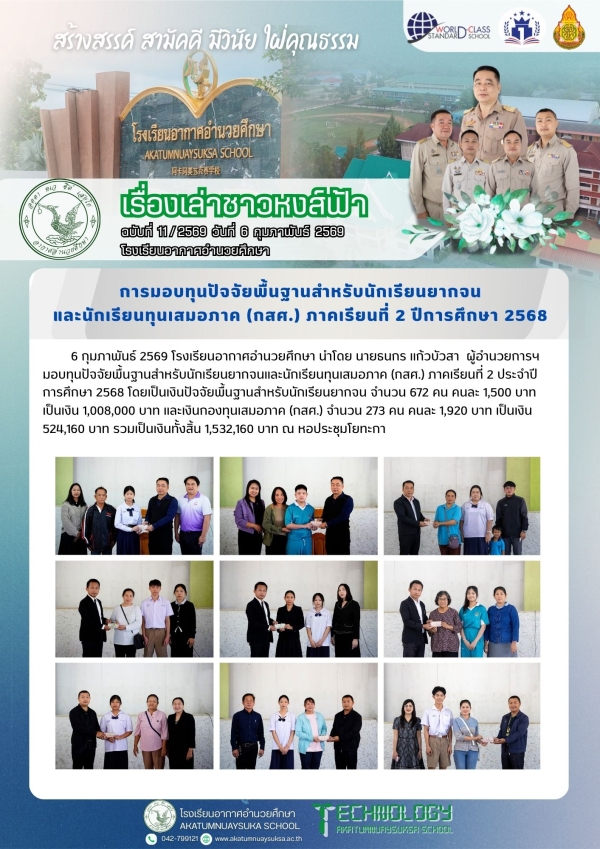 มอบทุนปัจจัยพื้นฐานสำหรับนักเรียนยากจนและนักเรียนทุนเสมอภาค (กสศ.) ภาคเรียนที่ 2 ประจำปีการศึกษา 2568 by adminPosted on 6 กุมภาพันธ์ 2026
