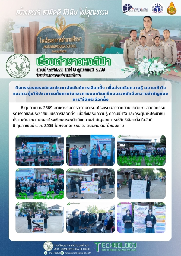 กิจกรรมรณรงค์และประชาสัมพันธ์การเลือกตั้ง เพื่อส่งเสริมความรู้ ความเข้าใจ และกระตุ้นให้ประชาชนทั้งภายในและภายนอกโรงเรียนตระหนักถึงความสำคัญของการใช้สิทธิเลือกตั้ง by adminPosted on 18 กุมภาพันธ์ 2026