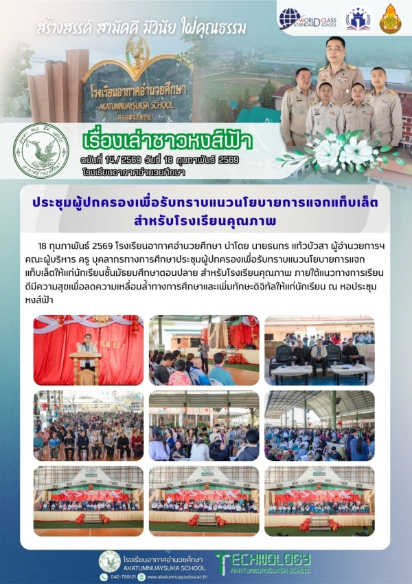 ประชุมผู้ปกครองเพื่อรับทราบแนวนโยบายการแจกแท็บเล็ต ให้แก่นักเรียนชั้นมัธยมศึกษาตอนปลาย สำหรับโรงเรียนคุณภาพ by adminPosted on 18 กุมภาพันธ์ 2026
