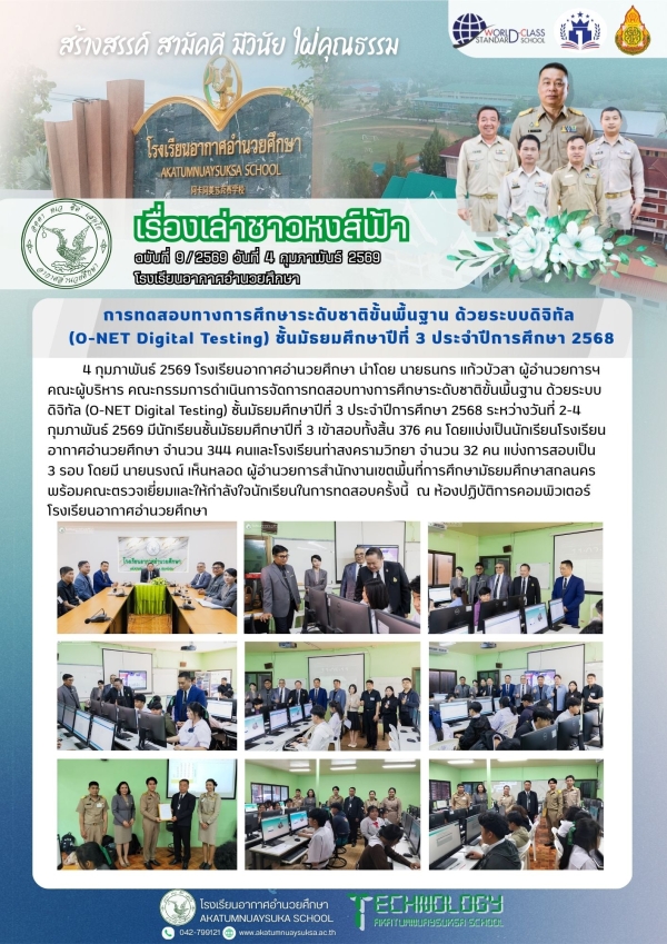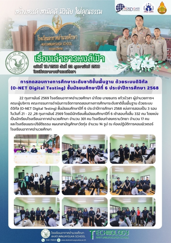 ดำเนินการจัดการทดสอบทางการศึกษาระดับชาติขั้นพื้นฐาน ด้วยระบบดิจิทัล (O-NET Digital Testing) ชั้นมัธยมศึกษาปีที่ 3 ประจำปีการศึกษา 2568 by adminPosted on 6 กุมภาพันธ์ 2026