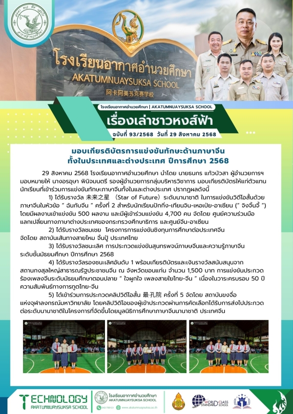 การแข่งขันทักษะภาษาและวัฒนธรรมจีนระหว่างศูนย์ส่งเสริมการเรียนการสอนภาษาจีน by adminPosted on 29 สิงหาคม 2025