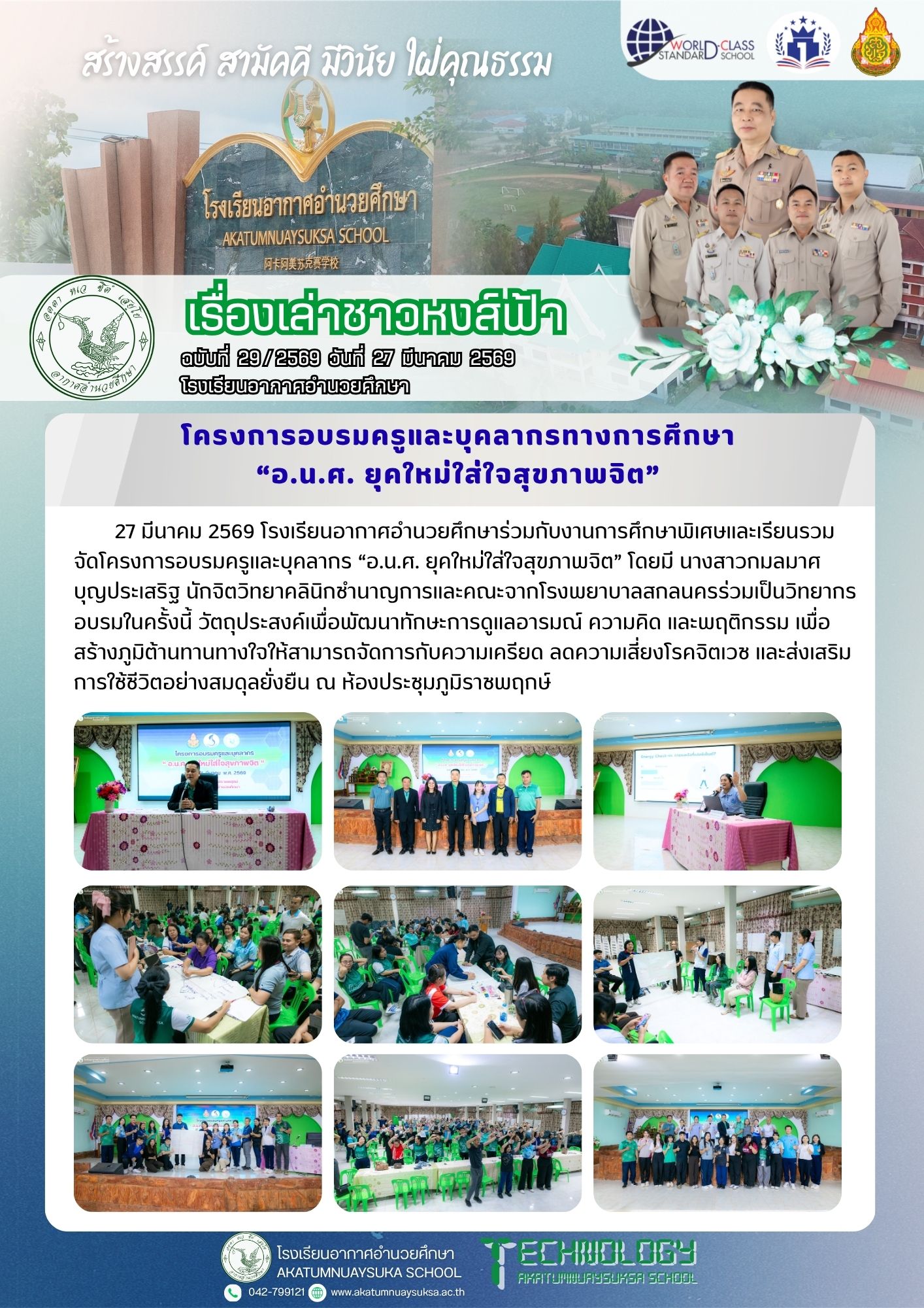 การอบรมพัฒนาครูและบุคลากร “อ.น.ศ. ยุคใหม่ใส่ใจสุขภาพจิต”